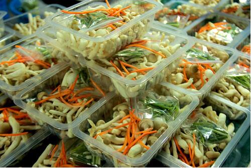 的基礎(chǔ)上,充氮氣或混合氣體進行包裝)封口、(上膜和托盤封在一起)沖切,最后排氣,降膜,